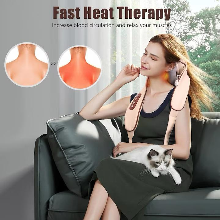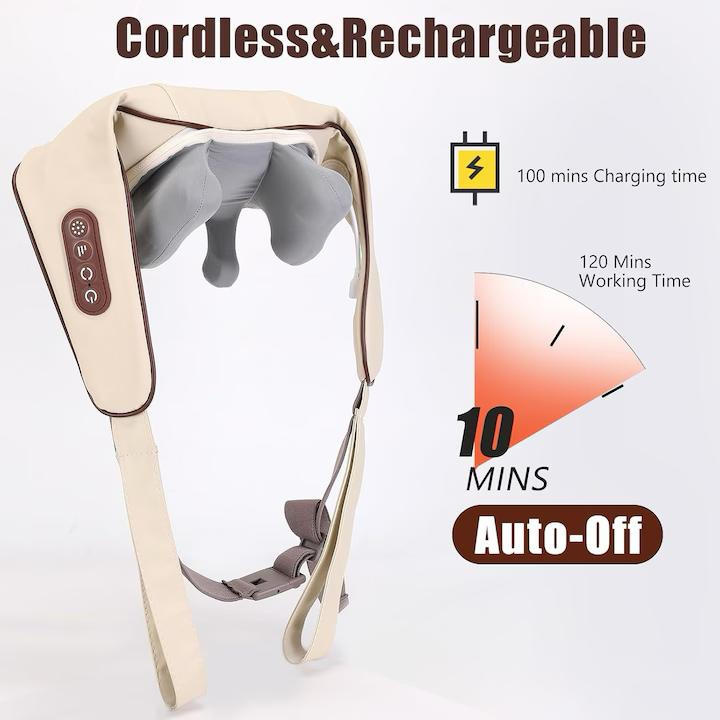 Aparat profesional masaj cervical și corporal, vibromasaj, căldură terapeutică, 3 intensități, 2 moduri, silentios, pentru gat, spate, umeri, picioare, abdomen