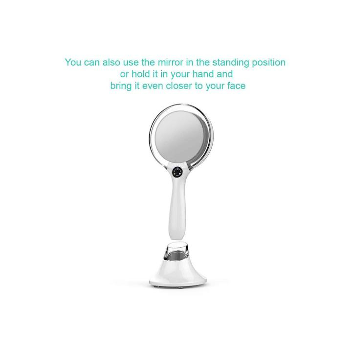 Echipată cu încărcare wireless, oglinda se menține mereu gata de utilizare, eliminând nevoia de cabluri sau baterii externe. Designul său compact și elegant, în culoarea albă, se potrivește perfect pe orice masă de machiaj sau birou.