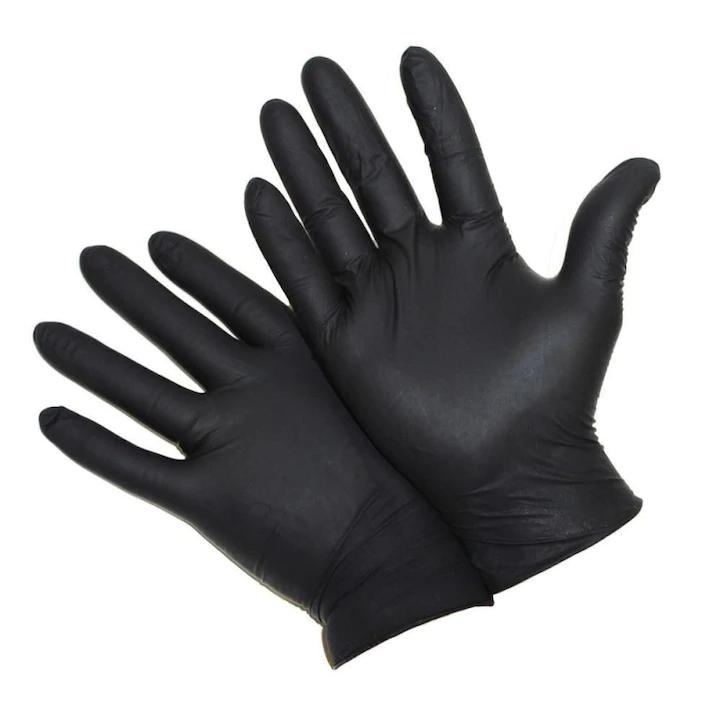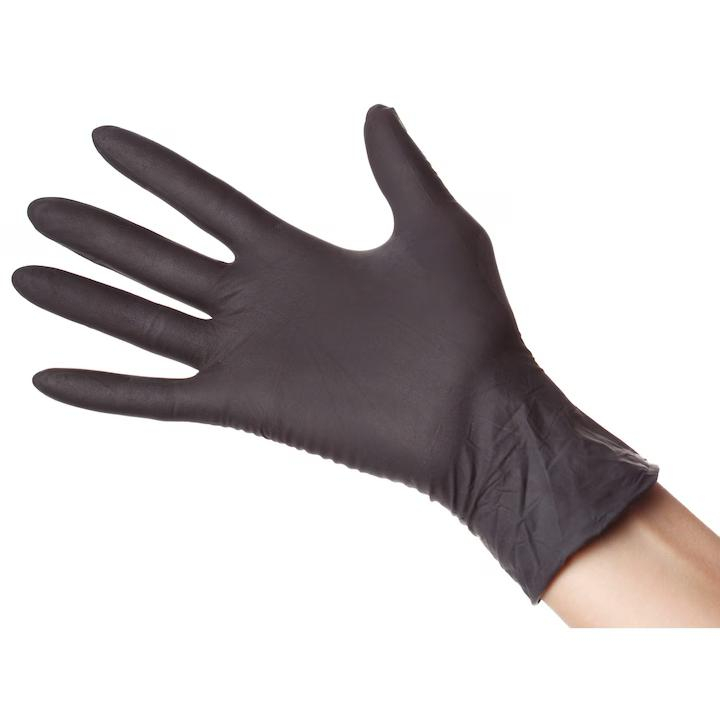 Set 100 bucati manusi de unica folosinta din Nitril, texturate, negre, marimea M