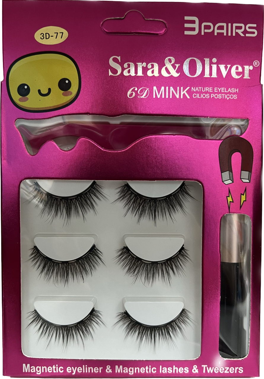 Set 3 Perechi de Gene False 3D-77, Magnetice, cu Aplicator si Tus / Eyeliner Magnetic, Reutilizabile