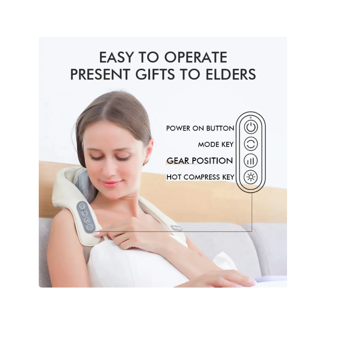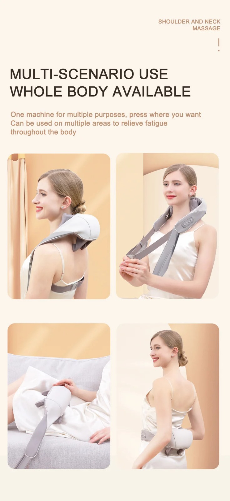Aparat de Masaj Cervical cu Acumulator, Incalizre, 4 Moduri de Rotatie, pentru Umar, Spate, Incalzire, Masaj Muscular Relaxare, Framantare 5D
